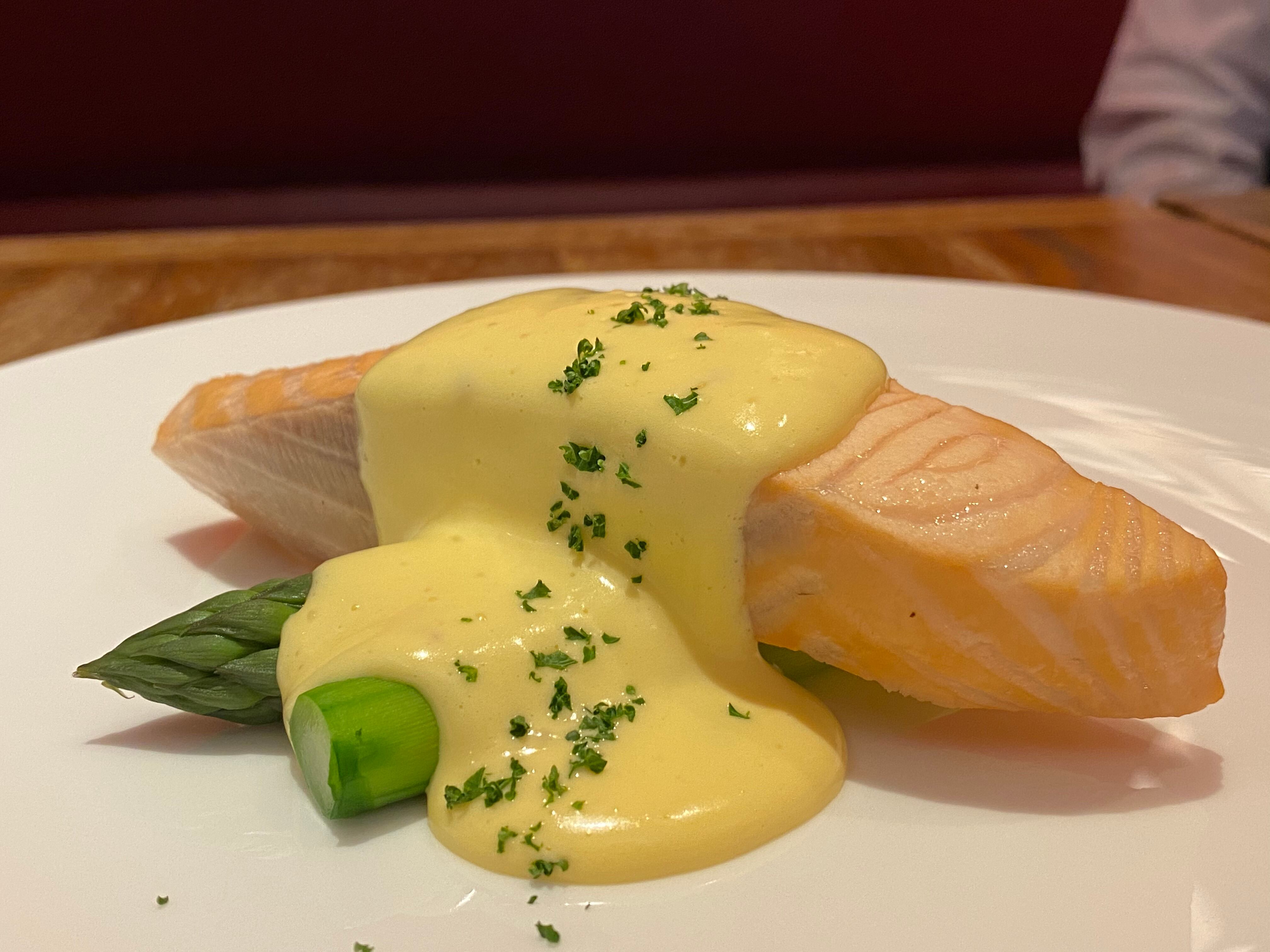①新作『サーモンのポシェとアスパラガスのオランデーズソース』