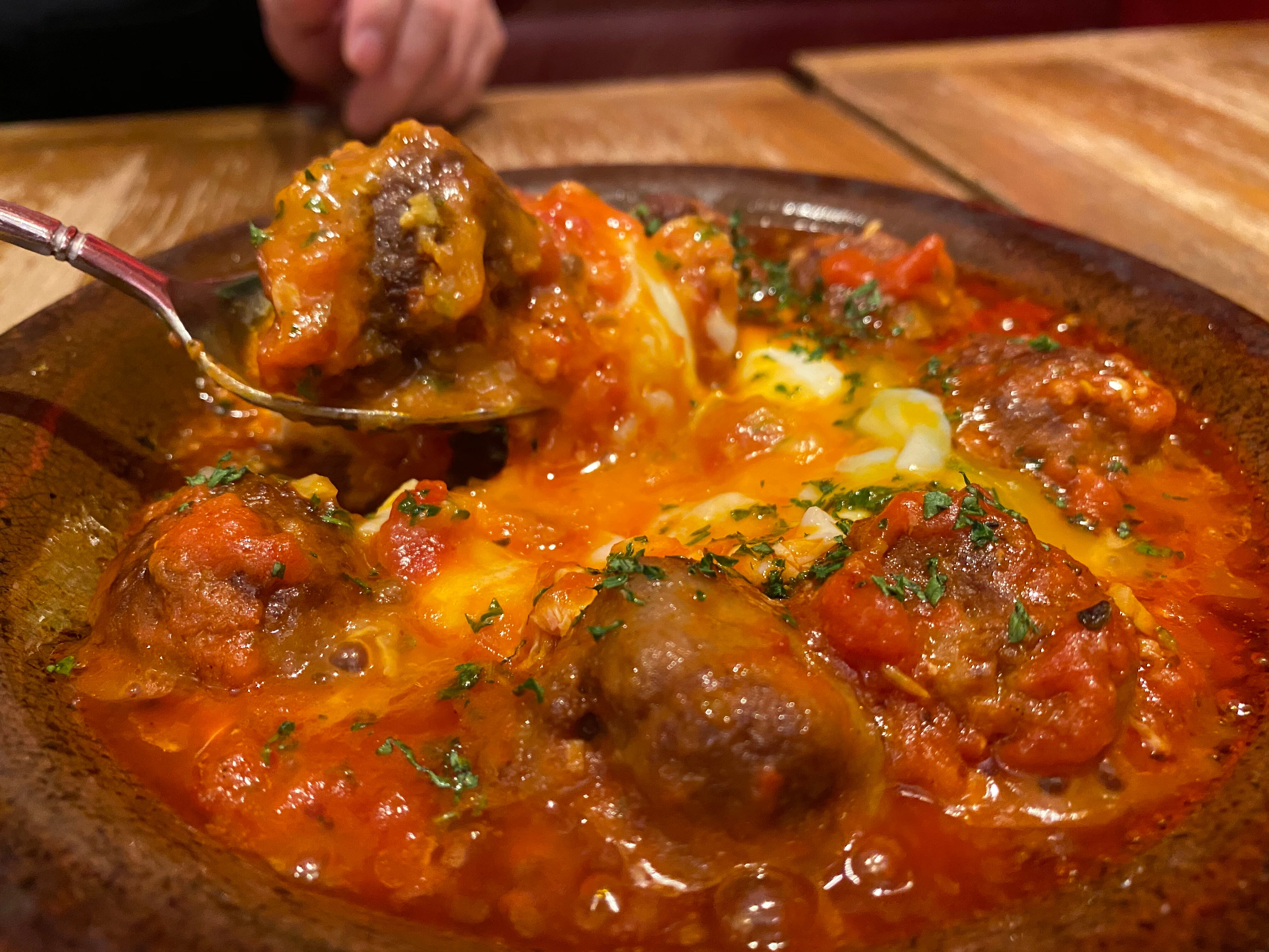 スパイスたっぷりのトマトソースで煮込んだミートボールに北アフリカ生まれの辛み調味料『アリッサ』を添えてお召し上がりいただきます!