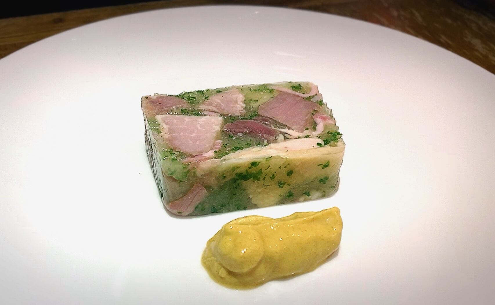 やわらかく煮込んだお肉をパセリなどの香味野菜が香る風味豊かなゼリーで固めた冷たいテリーヌ。