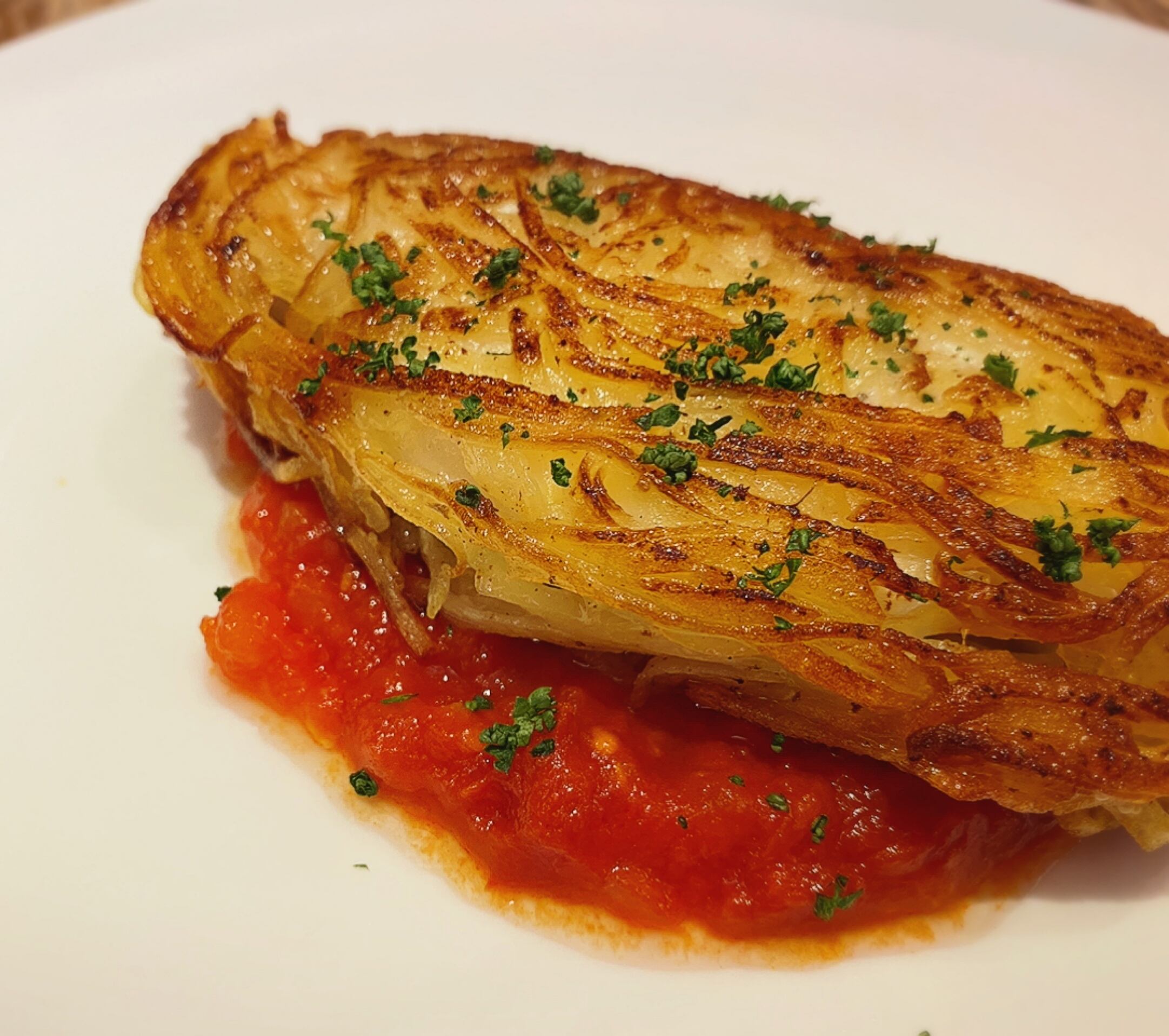 ポム・パイヤソンとは千切りのジャガイモをフライパンに平に広げて焼くフランスの家庭料理。