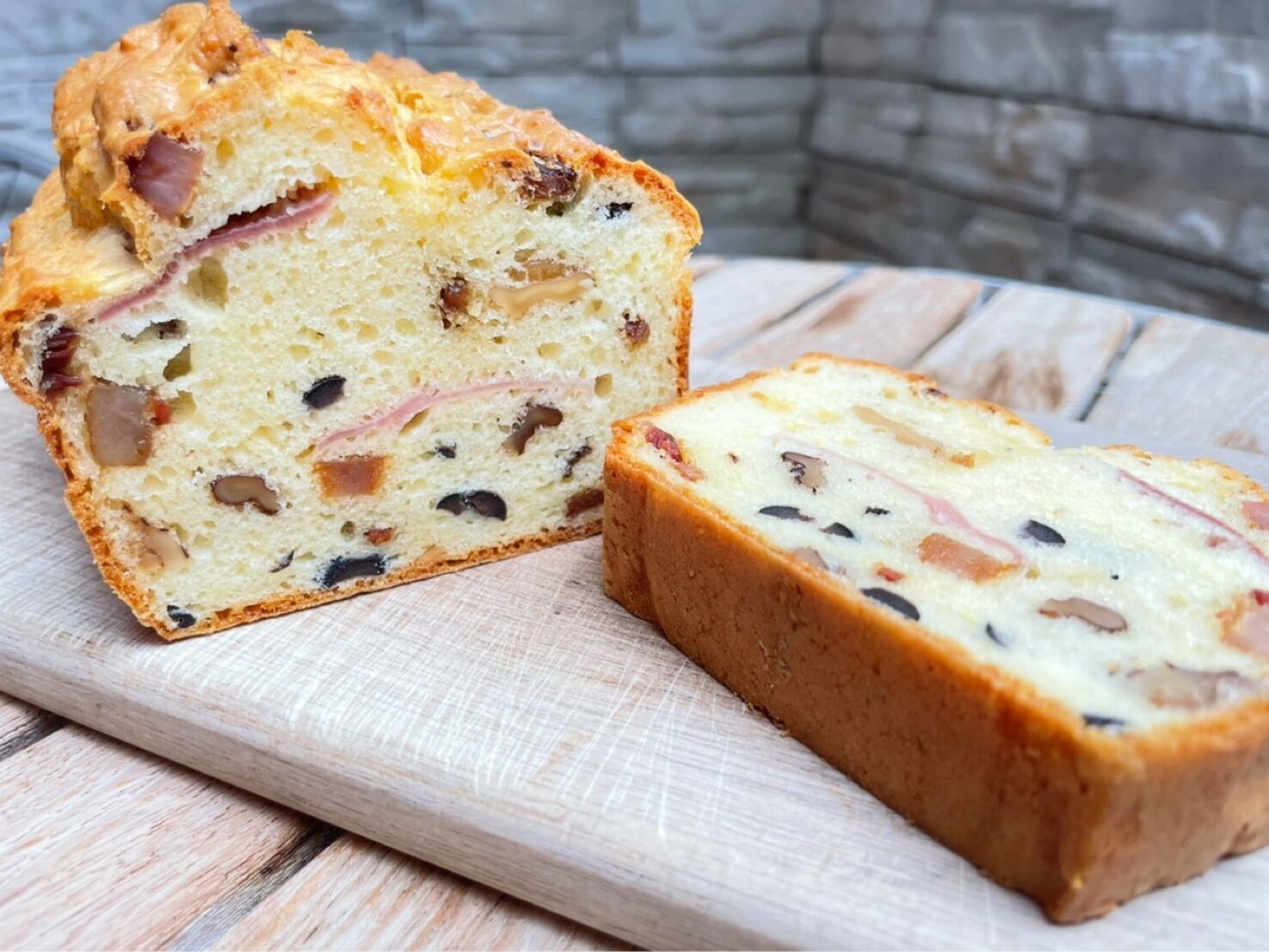 焼いたパンチェッタの油をハーブで香り付けした物を生地に加え、うま味と風味をアップさせて焼き上げたフランスのお惣菜ケーキ。