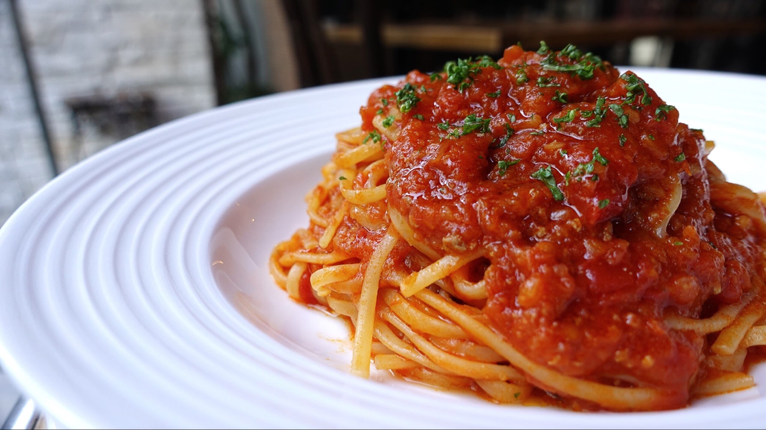 脱皮直後の柔らかいカニのうま味と香りをたっぷり詰め込んだトマトソースのパスタです。