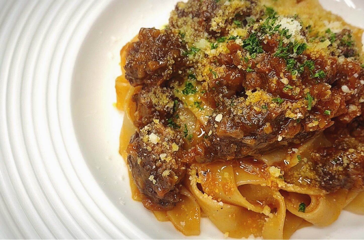 ① 調理済みメニュー『本格ボロネーゼ』(タリアテッレ2人前付)