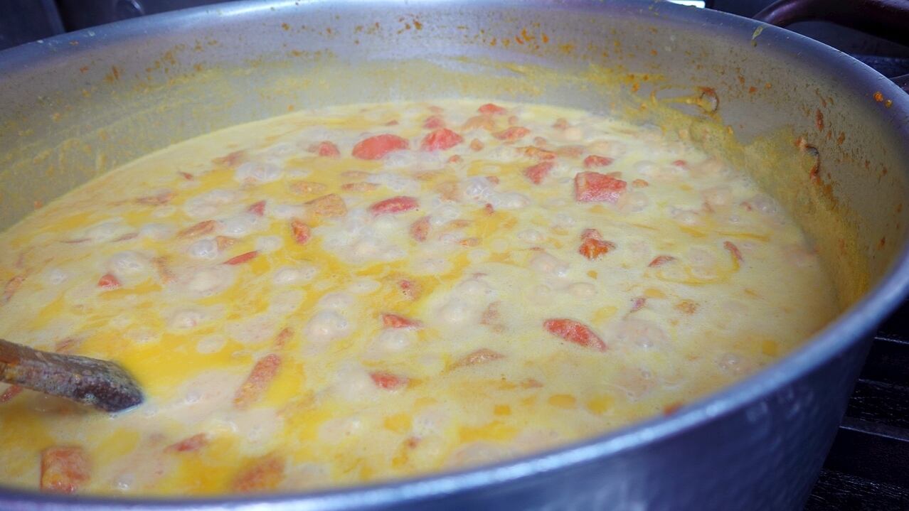 芯を取り除いた人参をバターでじっくり炒めて甘みとうま味を引き出し、たっぷりのジャージー牛乳で煮込んで作りました。