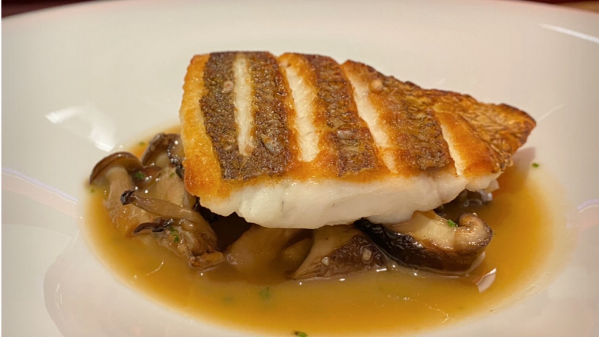 皮目はパリッとしつつ身はふんわりと。皮付きの白身魚をフライパンで美味しく焼きあげるポイント満載のレッスンです。フォン・ド・ヴォーとキノコを使ったソースも美味♪