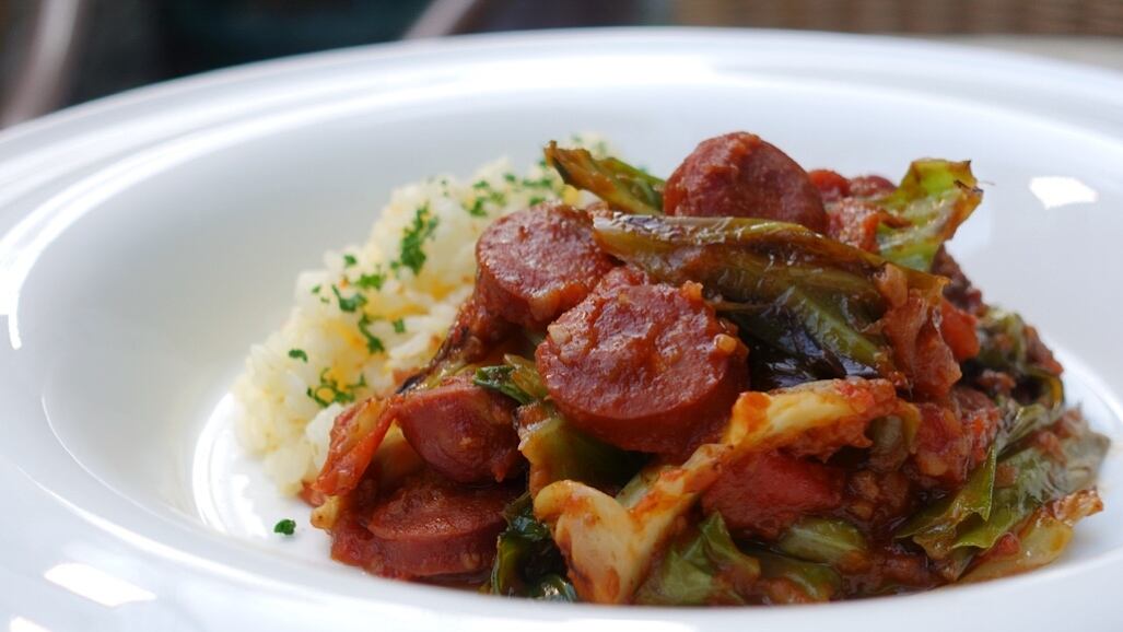 ルガイユとは、フランス領レユニオン島の郷土料理で、トマトや玉ねぎ、ニンニク、生姜、スパイス、そして唐辛子などを使って作る煮込みです。今回は最も定番のソーセージをメインに焼き目をつけたキャベツも加えて、うま味たっぷりかつほんのりスパイシー、そしてトマトのフレッシュ感も生かした味わいに仕上げます。ごはんに添えてもそのままビールのお供にしても♪