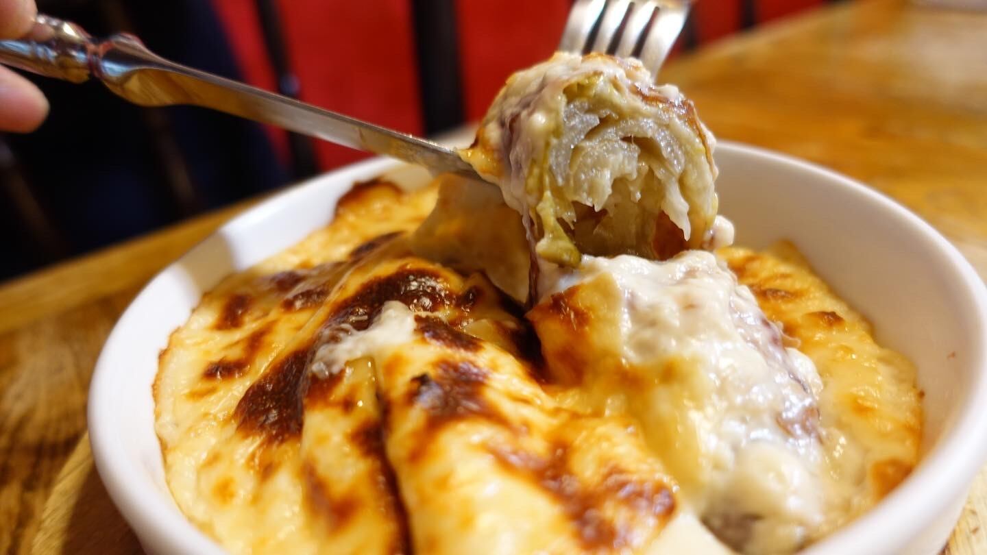 アンディーヴ(チコリ)を使った北フランスの定番家庭料理で、アンディーヴのほのかな苦みとまろやかでコクもあるモルネー風ソース、そしてベーコンやチーズのうま味も食欲をそそるちょっと大人な1品です。