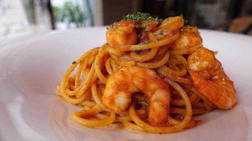 芝エビと香味野菜香る風味豊かなトマトパスタです。