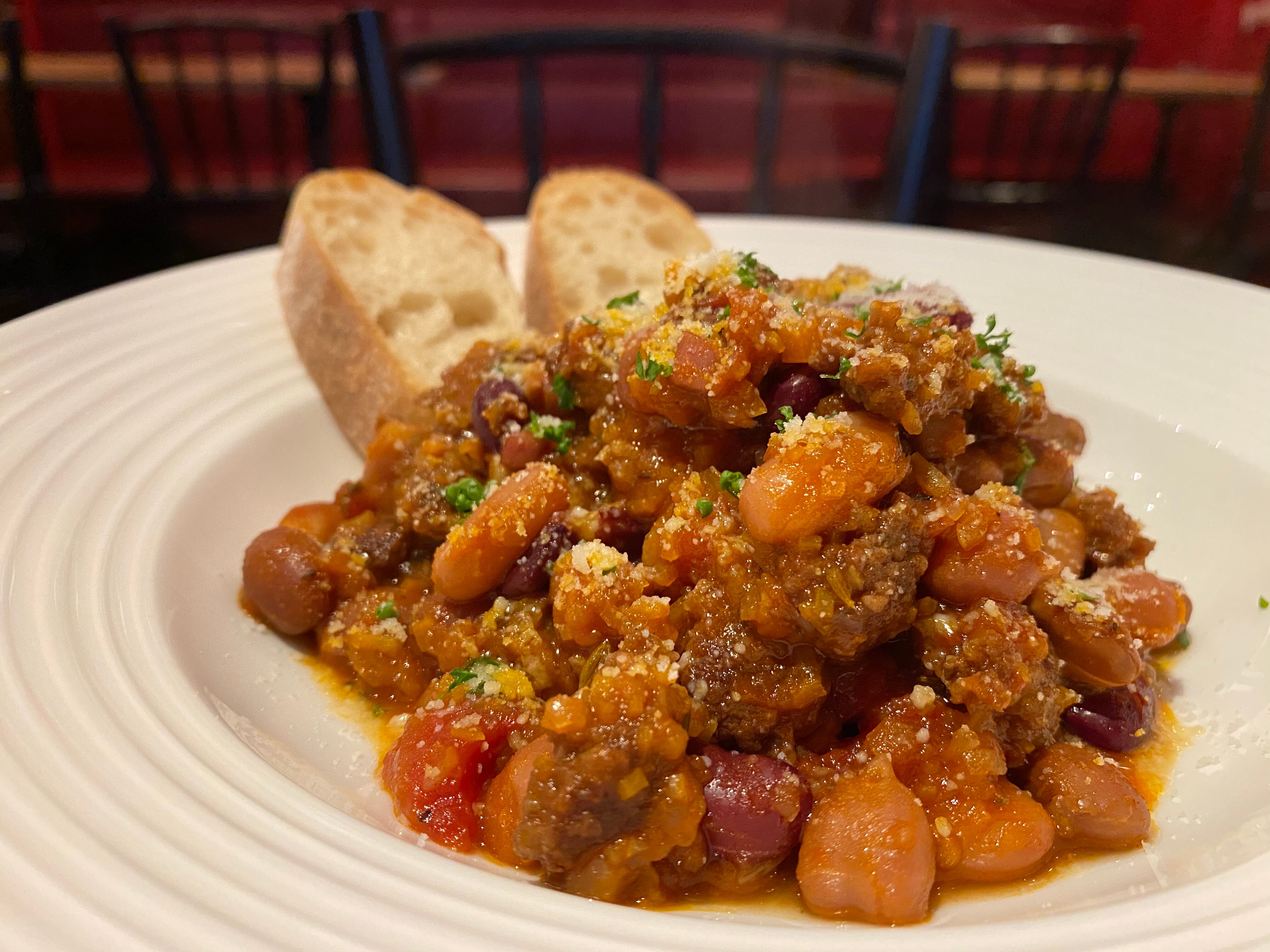 豆と挽肉をトマトやスパイスと共に煮込んでスパイシーかつうま味たっぷりに仕上げました。