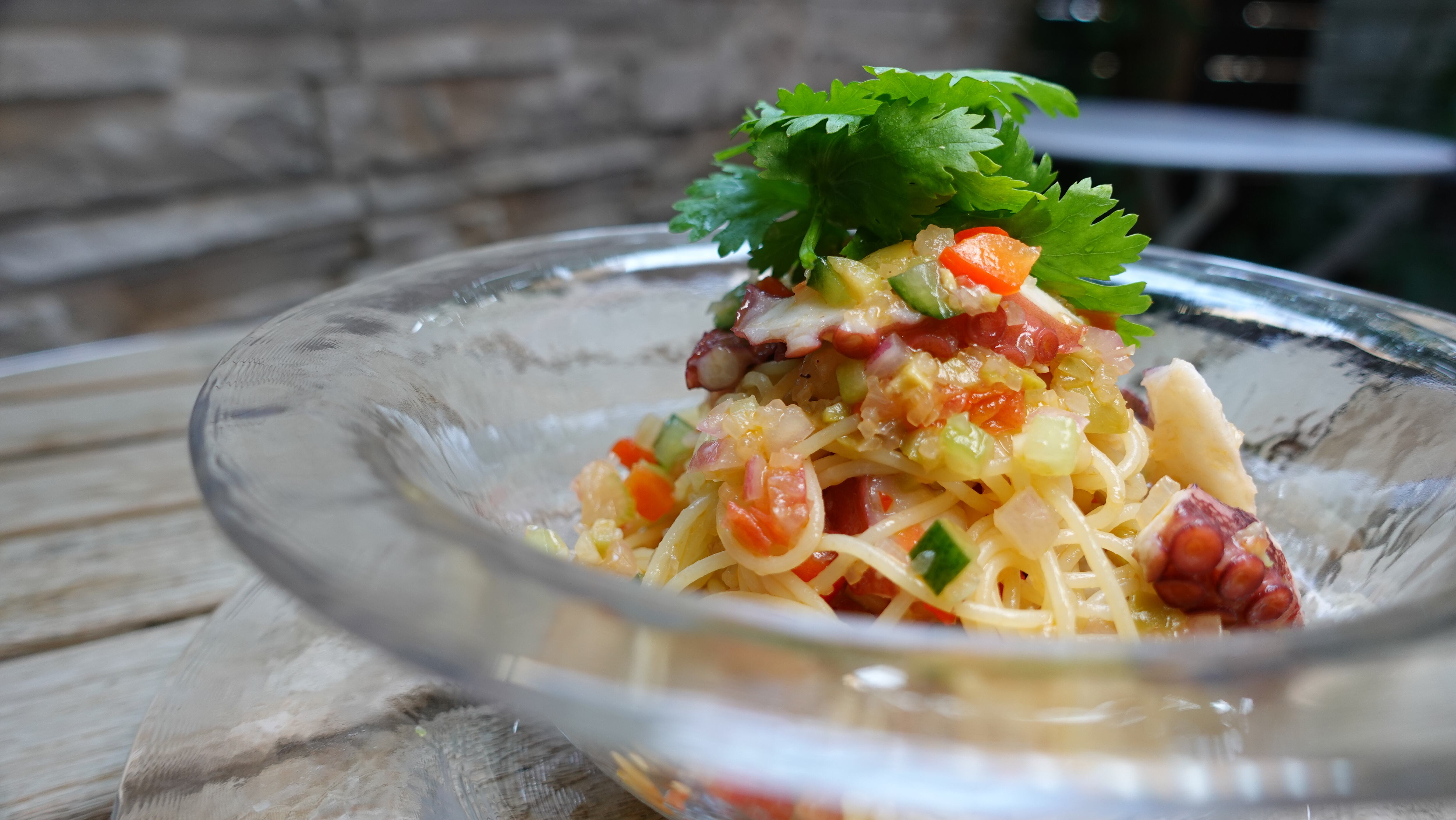 ①新作『タコとサルサ、オリーブの冷製パスタ』
