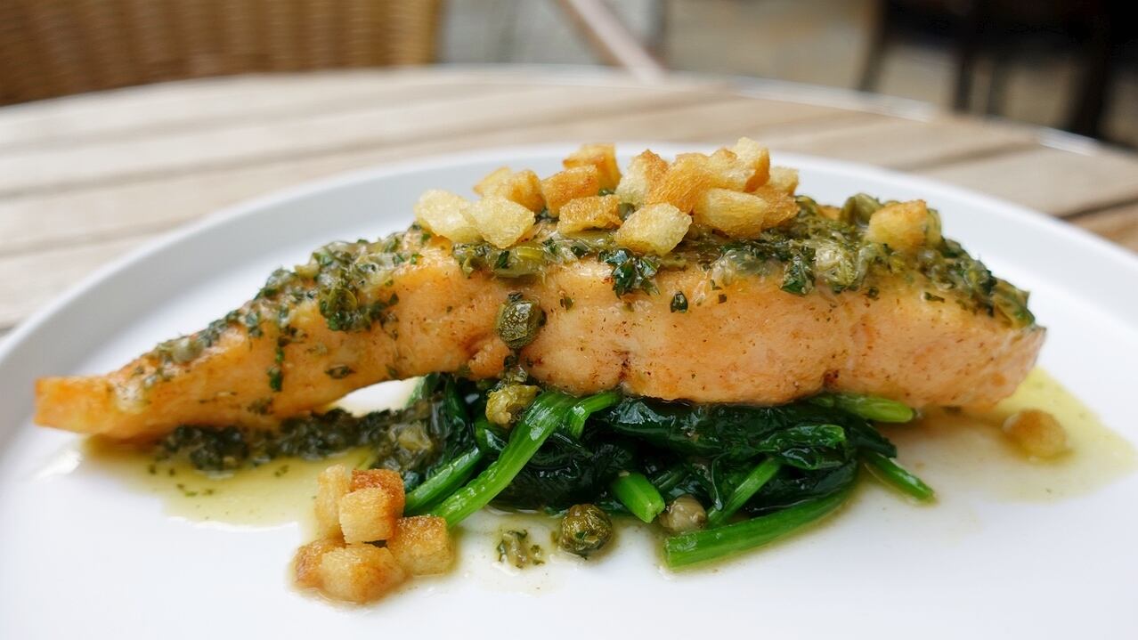 焦がしバターの香ばしい香りやコクと、レモンやケッパーの酸味がバランスよく、バターソースでありながらさっぱりとした味わい。